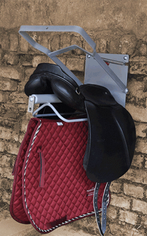 Ein darunter angebrachter weiterer Bügel nimmt die Satteldecke auf, so dass diese separat trocknen kann.